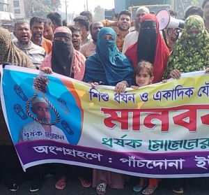 নরসিংদী সদর উপজেলার পাঁচদোনায় শিশু ধর্ষণ ও একাধিক যৌন হয়রানির প্রতিবাদে মানববন্ধন কর্মসূচি অনুষ্ঠিত হয়েছে।