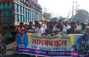 মঙ্গলবার (১১ নভেম্বর) সকালে পাঁচদোনা ইউনিয়নের ভাটপাড়া বাজারে এ মানববন্ধন কর্মসূচি পালন করা হয়।