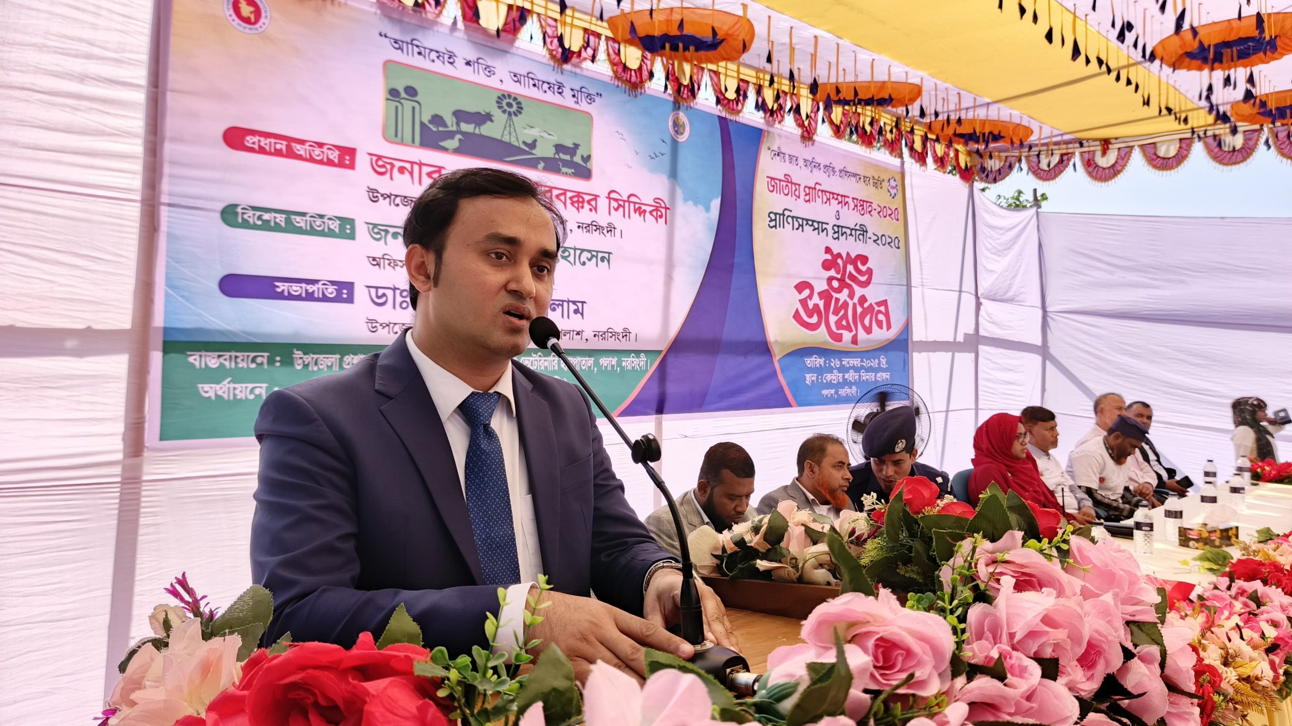 “দেশীয় জাত, আধুনিক প্রযুক্তি — প্রাণিসম্পদে হবে সমৃদ্ধি” “আমিষেই শক্তি, আমিষেই মুক্তি”এই প্রতিপাদ্যকে সামনে রেখে--- নরসিংদীর পলাশ উপজেলায় সপ্তাহব্যাপী জাতীয় প্রাণিসম্পদ সপ্তাহ ও প্রদর্শনী ২০২৫ উদ্বোধন করা হয়েছে।