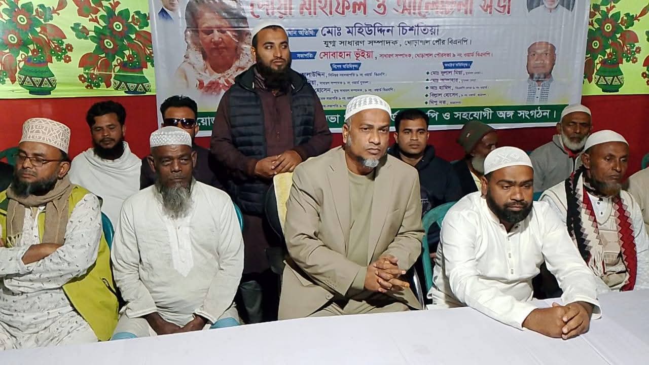 বিএনপির চেয়ারপার্সন, সাবেক প্রধানমন্ত্রী বেগম খালেদা জিয়ার দ্রুত রোগমুক্তি ও সু-স্বাস্থ্য কামনায় নরসিংদীর পলাশের ঘোড়াশাল পৌরসভার ভাগদীতে মিলাদ ও দোয়া মাহফিল অনুষ্ঠিত হয়েছে।