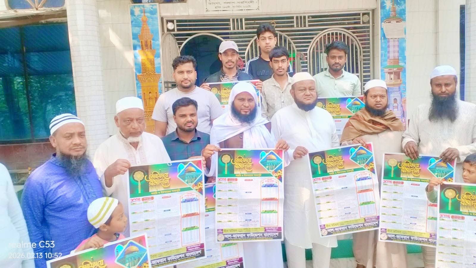 নরসিংদীর পলাশ উপজেলার ডাংগা ইউনিয়নে প্রতিবারের ন্যায় এবারও দুস্থ, অসহায় মানুষের পাশে দাঁড়ানো, অন্যায়ের প্রতিবাদী, সেবামূলক ও অলাভজনক সামাজিক স্বেচ্ছাসেবী সংগঠন আল-জাফ্রান ফাউন্ডেশন বাংলাদেশ কর্তৃক প্রকাশিত পবিত্র রমজানুল মোবারক ২০২৬ এর ইফতার ও সেহরির সময়সূচি সম্বলিত রমজানের ক্যালেন্ডারের মোড়ক উন্মোচন করা হয়েছে।