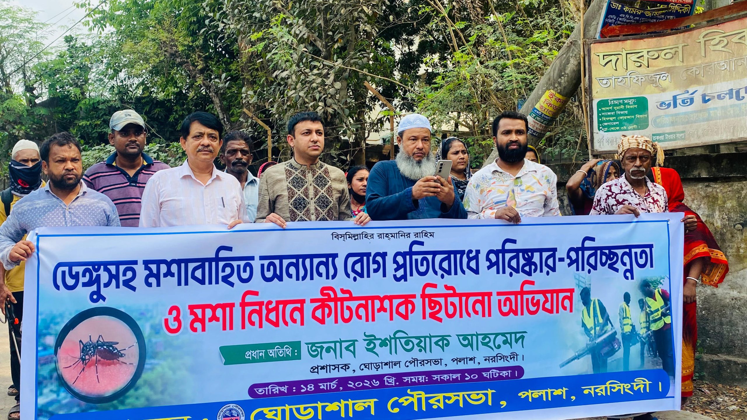 নরসিংদীর পলাশ উপজেলা প্রশাসন ও পৌরসভার আয়োজনে ডেঙ্গু প্রতিরোধে সচেতনতামূলক অভিযান কার্যক্রম শুরু হয়েছে।